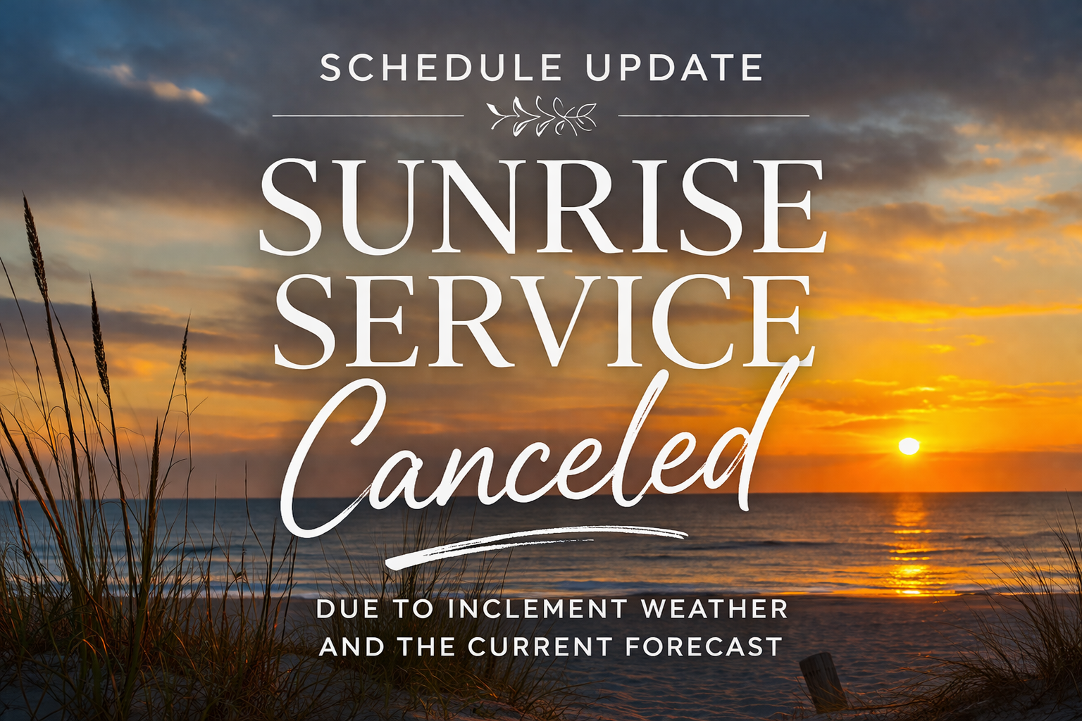 Due to inclement weather and the current forecast, our Sunrise Service scheduled for tomorrow has been canceled.