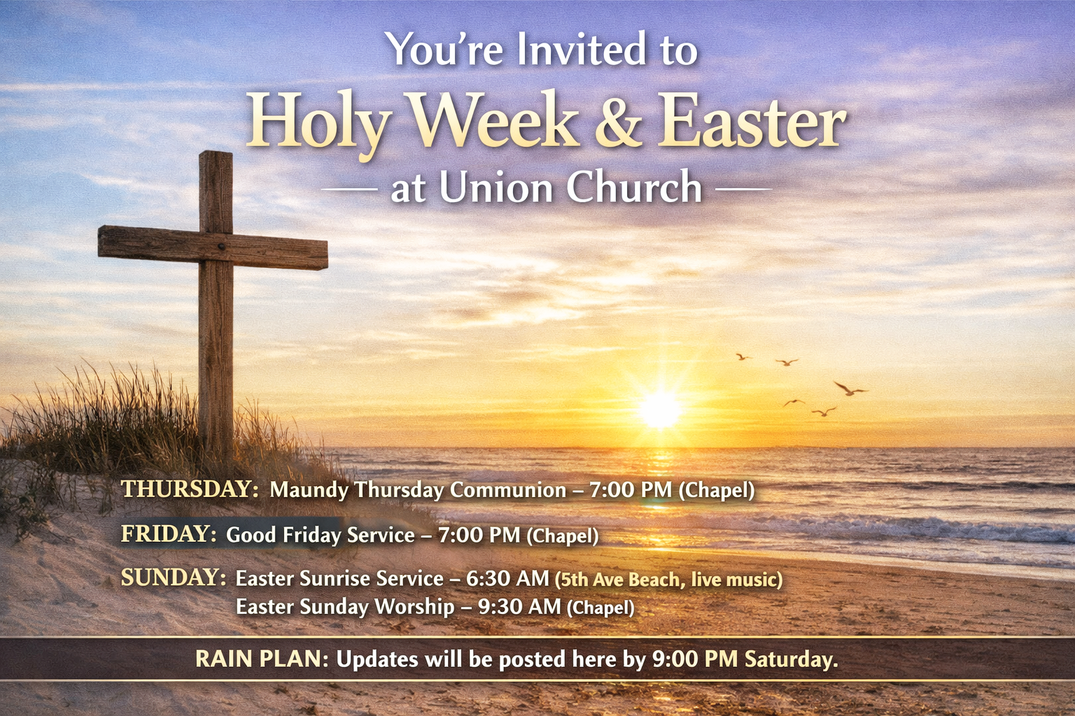 Welcome to The Union Church A place to grow in faith, find real community, and walk with Jesus in everyday life. Rooted in Scripture. Strengthened by prayer. Open to all.47 4th Avenue, Seaside Park, NJ 08752 | 732-793-0978 Join Us Every Sunday Morning ~Worship Service* starts at 9:30 AM *In person or Streaming Live on YouTube and Facebook Live Live Stream Links to our 9:30 AM Service Click Here to watch us on YouTube Click Here to watch us on Facebook Click below to make a tax deductible donation. Your contributions go directly toward our Church programs, missions and outreach. Donate Subscribe to our weekly e-bulletin! * indicates required Email Address * First Name Last Name